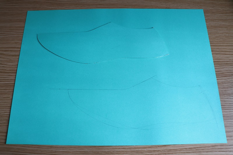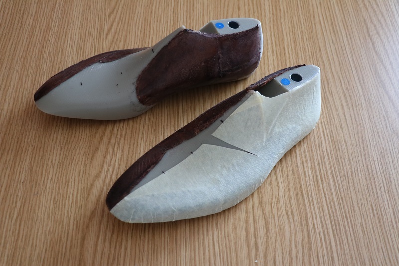 今回使う木型は左右で形が違うために、左足と右足は別々にパターンを作ります。