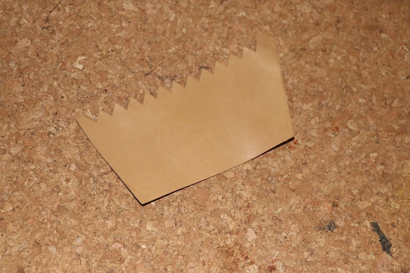 革の厚みを漉き機で調整し、下の部分は三角にカットします。