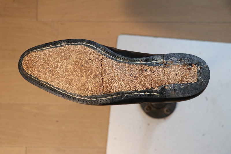 この時にコルクなどの中物が一緒にはがれてしまうことが多いのですが、この靴の場合そのようなことはありませんでした。