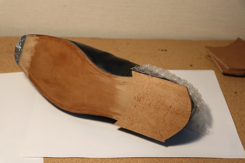 そして次は、ヒールとコバを仕上げます。