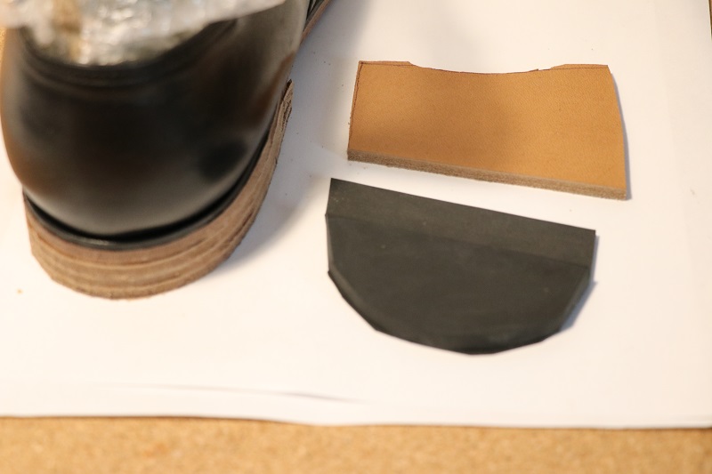 最後の一枚はトップピース用のラバー素材と革を使います。