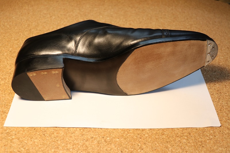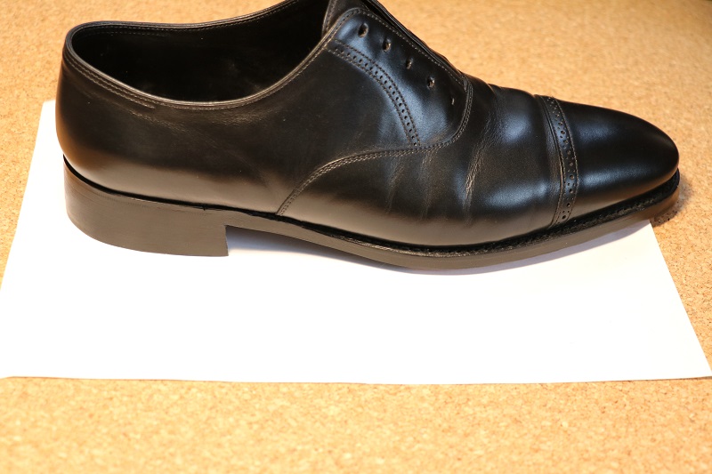 ジョンロブの靴はヒールあごのアールが緩やかで、ラバー素材の角度も緩やかになっています。