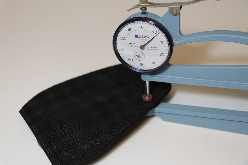 このソールを見ると、特に体重が加わる外側の屈曲部分と、親指側のつま先に厚みがあります。