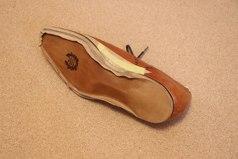 この靴のソールは、もともとウェスト部分がラウンドしているタイプだったのですが、今回はフィドルバックにします。